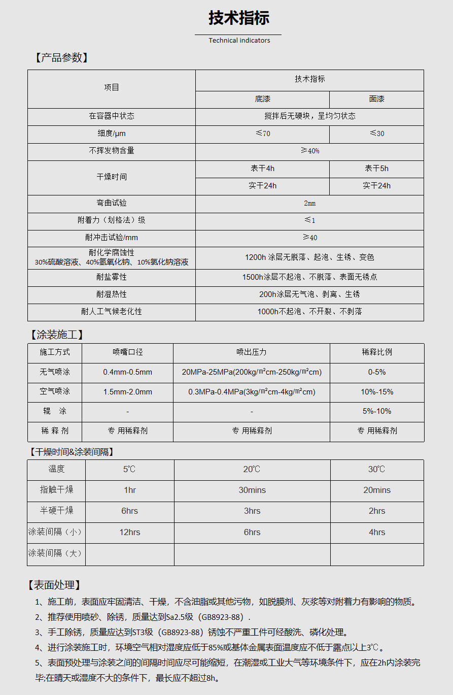 • 設計壽命 10~15年(C5-M級腐蝕環境),耐候性優于普通防腐涂料。
